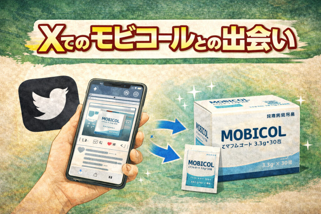 そんなとき、X(旧Twitter)やThreadsで必死に調べて見つけたのが「モビコール」という薬です。