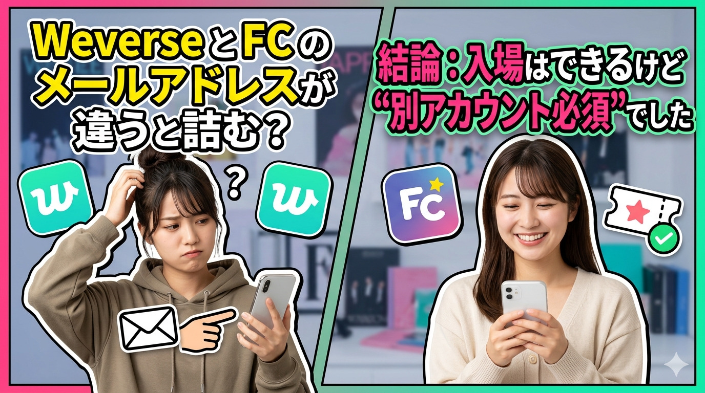 【公式回答あり】weverseとFCのメールアドレスが違うと詰む?→結論:“別アカウント必須”です